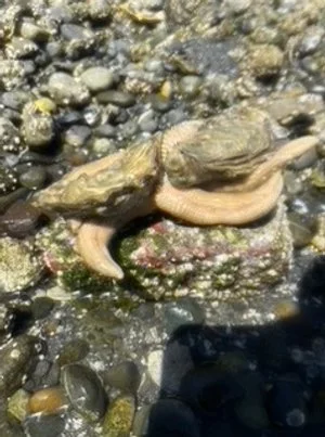 Knowing your beach is everything when it comes to beach culture. Familiarity with predators, substrate, and water flow proves to be invaluable when deciding where to spread your oysters. One part of your beach might produce more barnacles than an other. Predatory moon snails, crabs, and starfish may be lying in wait in your subtidal areas. Ulva might be so thick that it smothers your oysters. Burrowing shrimp- an invasive species- and their burrows might be present in such volume that the mud start to cave in on itself- causing your oysters to sink into the substrate and suffocate.